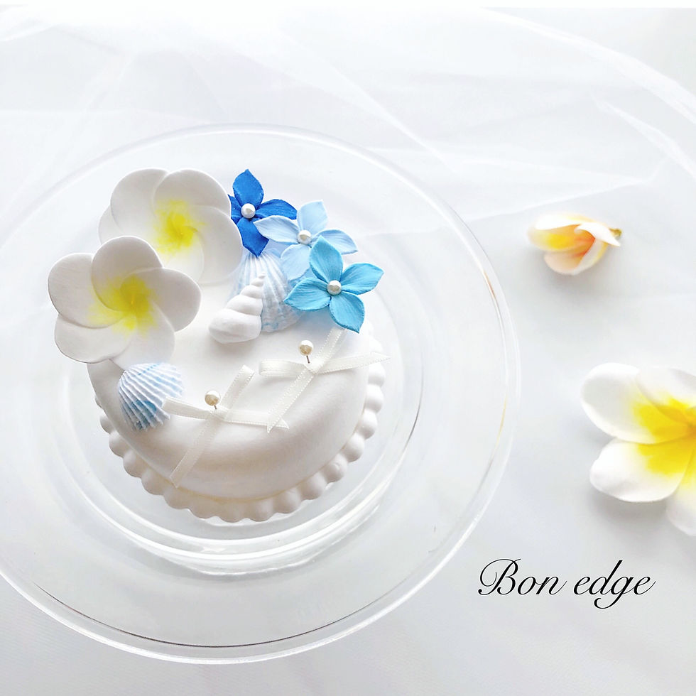 プルメリアとシェルのリングピロー(ティファニーブルー)